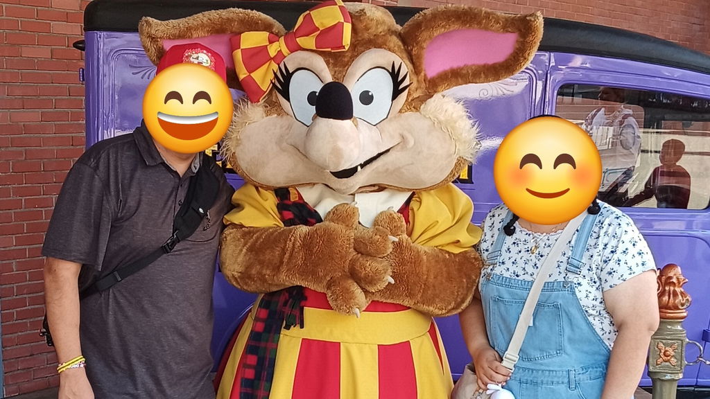 Drei Charaktere wechseln sich an zwei Orten ab: Am Eingang von Bear-y Tales, neben der Calico Stage.