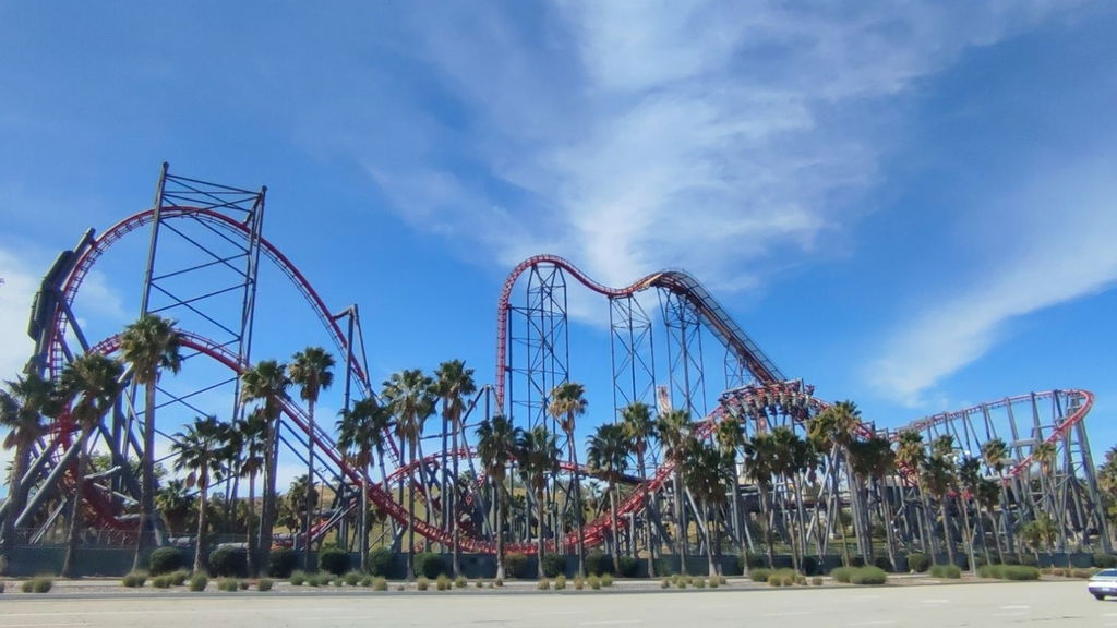 Ahhhhhh! Diese Fahrt ist einfach unglaublich! X2 ist eine super aufregende 4D-Achterbahn und das letzte Werk von Arrow Dynamics. 4D bedeutet, dass sich die Sitze unabhängig vom Zug drehen.